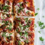 This BBQ Chicken Crust Pizza is a delicious high-protein meal that replaces traditional dough with a savory chicken crust. Topped with sugar-free BBQ sauce, mozzarella, red onions, and bacon, it’s a flavorful and lower-carb alternative perfect for pizza lovers seeking a protein-packed dinner option.