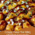 BBQ Chicken Tater Tot Casserole is a hearty and comforting dish that combines tender shredded chicken with tangy BBQ sauce and crispy tater tots. It’s an easy, crowd-pleasing meal perfect for busy weeknights or casual gatherings.
