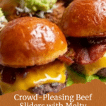 Keywords: beef sliders, game night recipe, potluck sliders, Hawaiian rolls, ground beef sliders, party food, crowd-pleaser, easy sliders recipe