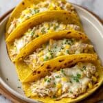 Keywords: white chicken chili tacos, creamy chicken tacos, baked chicken tacos, easy chicken taco recipe, white chili sauce tacos