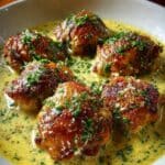 Bobby Flay’s Chicken Thighs with Creamy Garlic Sauce features tender, bone-in, skin-on chicken thighs seared to a crispy golden brown and simmered in a rich, flavorful garlic cream sauce. This skillet-cooked dish offers a perfect balance of savory and tangy notes, enhanced by fresh parsley, and is ideal for a comforting dinner.