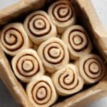 - Shape the Rolls: Carefully roll the dough tightly from one long side to the other, forming a log. Slice the log into 10–12 even rolls and arrange them in a greased baking dish with some spacing to allow for expansion.