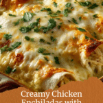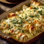 Delicious Chicken Enchiladas baked with a creamy white sour cream sauce, filled with tender shredded chicken and wrapped in soft tortillas. This comforting Mexican-inspired casserole is perfect for a family dinner and is easy to prepare with simple ingredients.