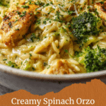 A quick and creamy Spinach Orzo recipe combining tender spinach, rich cream, and savory Parmesan cheese stirred into perfectly cooked orzo pasta for a comforting side or light main dish.