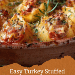 Delicious and hearty Turkey Stuffed Shells, featuring large pasta shells filled with a savory turkey and cheese mixture, baked to perfection for a comforting family meal.