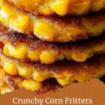 These Crispy Cheesy Corn Fritters are a delicious and easy-to-make snack that combines sweet corn kernels with sharp cheddar and Parmesan cheeses in a perfectly seasoned, crispy fried batter. Perfect for an appetizer, snack, or side dish, these fritters feature a golden crust and a tender, cheesy interior, enhanced with flavorful green onions and a blend of spices. Serve them warm with your favorite dipping sauce for an irresistible treat that’s sure to please any crowd.