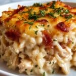 This Dump-and-Bake Chicken Alfredo Rice Casserole is a comforting one-dish meal perfect for busy weeknights. Creamy Alfredo sauce combines with tender chicken, rice, and cheesy goodness for an easy, satisfying dinner the whole family will love.