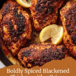 This Easy Blackened Chicken recipe features succulent boneless, skinless chicken breasts coated with a flavorful blend of smoky paprika, cumin, cayenne, and herbs, quickly seared in a hot cast-iron skillet and finished in the oven for a perfectly cooked, juicy meal in just 30 minutes.