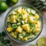 This easy pineapple cucumber salad is a refreshing and vibrant dish perfect for a quick snack or a light side. Combining the sweetness of fresh pineapple with the cool crunch of cucumber, accented by tangy lime and fragrant cilantro, this salad is both simple to prepare and bursting with bright flavors.