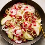 Keywords: fennel salad, apple salad, radish salad, pomegranate, walnuts, fresh salad, vegetarian, healthy side dish, citrus vinaigrette