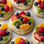 Soft sugar cookies topped with creamy frosting and vibrant fresh fruit make these Fruit Pizza Cookies a delightful treat. They combine the best of a cookie and a fruit pizza in one bite, perfect for any occasion.