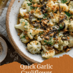 Keywords: garlic cauliflower, mushroom skillet, quick vegetarian recipe, sautéed vegetables, healthy side dish