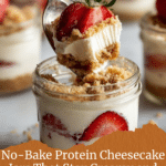 Keywords: high protein cheesecake, no bake cheesecake, healthy dessert, protein dessert jars, easy cheesecake, Greek yogurt dessert, snack jars