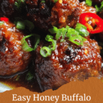 These Honey Buffalo Crockpot Meatballs feature tender, juicy meatballs simmered in a deliciously tangy and sweet buffalo sauce with honey and butter, perfect for a flavorful party appetizer or a cozy meal.