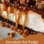This Hot Fudge Sundae Brownie Cheesecake combines rich, fudgy brownies with a creamy cheesecake layer, topped with luscious hot fudge sauce. It’s a decadent dessert perfect for anyone craving a delightful fusion of chocolate and cheesecake flavors, offering both a soft and fudgy texture in every bite.