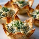 These irresistible Spinach Artichoke Dip Cups are the perfect bite-sized treat for any gathering. Crispy phyllo shells filled with a creamy, cheesy spinach and artichoke mixture will have your guests coming back for more.