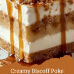 Experience the ultimate dessert indulgence with this Irresistibly Creamy Biscoff Poke Cake. Featuring a moist vanilla cake base infused with rich Biscoff spread and sweetened condensed milk, topped with fluffy homemade whipped cream and a crunchy Biscoff cookie garnish, this cake is perfect for any occasion. Easy to make and delightfully decadent, it’s a guaranteed crowd-pleaser.