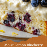 A moist and tangy Lemon Blueberry Cake featuring fresh blueberries and zesty lemon flavor, topped with a smooth, creamy lemon cream cheese frosting. This delightful cake is perfect for spring and summer gatherings or any occasion craving a burst of fresh, fruity sweetness.