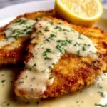This Lemon Pecorino Crusted Chicken features a perfectly crispy coating flavored with lemon zest and Pecorino Romano cheese. It’s served with a rich, creamy lemon sauce that adds bright, tangy notes, making it a delicious and elegant dish for any occasion.