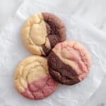 Neapolitan Cookies are a delightful trio of flavors in a single cookie, featuring layers of classic vanilla, vibrant strawberry, and rich chocolate doughs. These beautifully marbled cookies are rolled in sprinkles or sugar for a festive touch and baked to a perfect soft and tender texture. A fun and eye-catching treat that’s perfect for any occasion, blending fruity and chocolate notes in every bite.