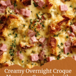 Keywords: Croque Monsieur casserole, overnight casserole, breakfast casserole, brunch recipe, Gruyere cheese recipe, Canadian bacon casserole