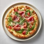 - Add Prosciutto: Remove the pizza from the oven and immediately drape the prosciutto slices evenly over the hot pizza so they gently warm without crisping too much.