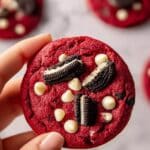 These Quick Red Velvet Oreo Cookies combine the rich, decadent flavor of red velvet with chunks of crunchy Oreo cookies and melty white chocolate chips. Perfectly chewy with just a hint of crisp around the edges, these cookies are quick to prepare and chill before baking for wonderfully uniform results. The use of espresso powder amplifies the cocoa flavor, while the vibrant red food coloring makes these treats visually stunning as well as delicious.