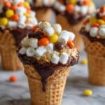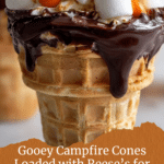 Reese’s Campfire Cones are a fun and easy dessert perfect for camping or backyard gatherings. Waffle cones are filled with layers of mini marshmallows, chocolate chips, Reese’s Mini Peanut Butter Cups, and Reese’s Pieces, then wrapped in foil and heated until gooey and melted. These sweet treats can be cooked over a campfire, grill, or in the oven for a delicious, melty, and nostalgic dessert.
