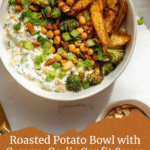 This Roasted Potato Bowl with Garlic Confit Sauce is a comforting and flavorful meal that’s perfect for any day. Packed with spiced potatoes, roasted chickpeas, and vibrant broccoli, it’s finished with a creamy garlic sauce that brings everything together beautifully.