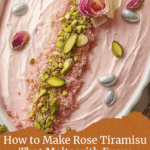This Rose Tiramisu is a luxurious, eggless dessert that combines the delicate floral flavors of rose syrup and rose water with creamy mascarpone and whipped cream. Ladyfinger cookies soaked in a fragrant rose milk mixture create a soft, luscious base, layered with a smooth mascarpone blend, then chilled to perfection. Garnished with edible rose buds and silvered pistachios, this elegant treat is perfect for special occasions or any time you want a delightful, refreshing dessert with a unique twist.