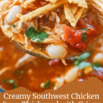 This Southwest Chicken Soup is a hearty and flavorful Chili’s copycat recipe, featuring tender shredded chicken, hominy, and a blend of classic southwestern spices. Thickened with crushed tortilla chips and garnished with fresh cilantro and tortilla strips, it’s a comforting and spicy soup perfect for any day.