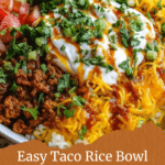 Keywords: taco rice bowl, ground beef recipe, easy dinner, Mexican rice bowl, weeknight meal