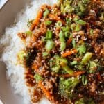 This Teriyaki Turkey Rice Bowl features lean ground turkey and nutritious vegetables cooked in a sweet and savory homemade teriyaki sauce, served over your choice of white or brown rice. A quick and healthy one-pan stir-fry meal perfect for weeknight dinners.