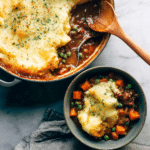 Keywords: vegetarian shepherd’s pie, mushroom pie, mashed potato topping, vegetarian dinner, cozy recipes, meatless comfort food