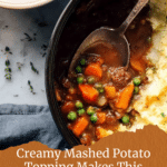 - Assemble and Bake: Evenly spread the mashed potato mixture on top of the vegetable filling. For an extra buttery finish, brush the mashed potatoes with melted butter or olive oil. Place the pot in the oven and bake at 350°F (175°C) for about 15 minutes until heated through.