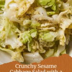 - Dress the salad: Transfer cabbage to a serving bowl, pour dressing over, and toss well using spoons or chopsticks until evenly coated. Sprinkle with untoasted sesame seeds and mix again.